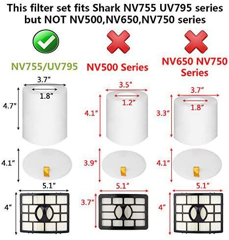 These are generic replacement parts for OEM part numbers XFF755 and XHF650, and are designed using high quality materials that meet OEM standards at a better value than the manufacturer's cost. Product includes one HEPA filter, two foam filter, and two felt filter for Shark Navigator NV755 ➕ UV795 vacuum cleaners.