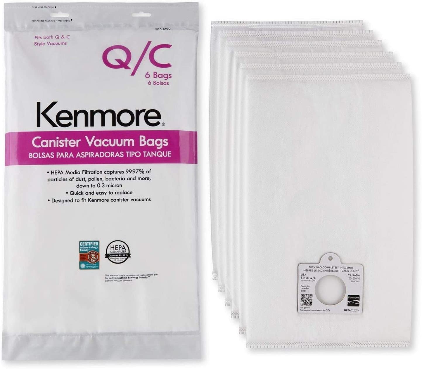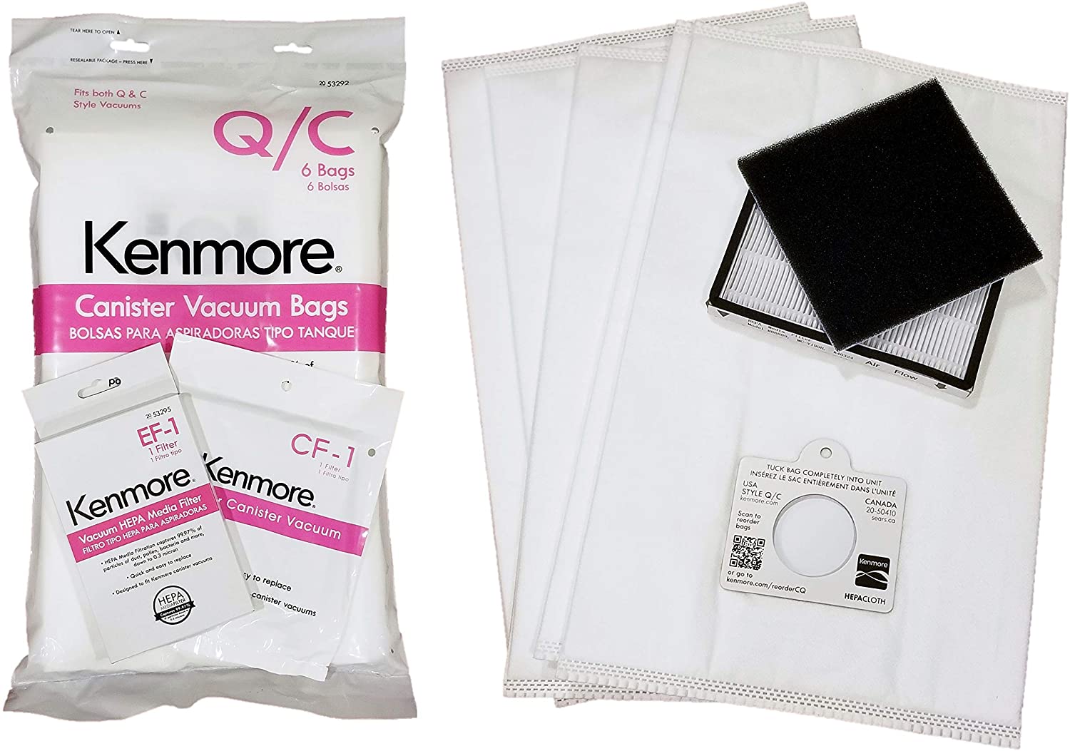 6 Kenmore Q / C HEPA Canister Vacuum Bags, 1 CF1 81002, 1 EF1 86889 Exhaust Filter. Progressive Intuition